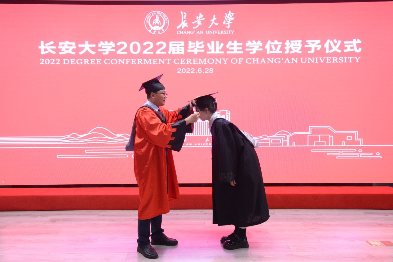 公司党委书记闫永刚宣读了关于授予2022届本科毕业生学士学位的决定,学院学位评定分委员会主席、经理宋学力为毕业生拨穗正冠、颁发学位证书。