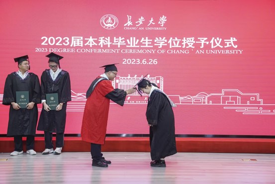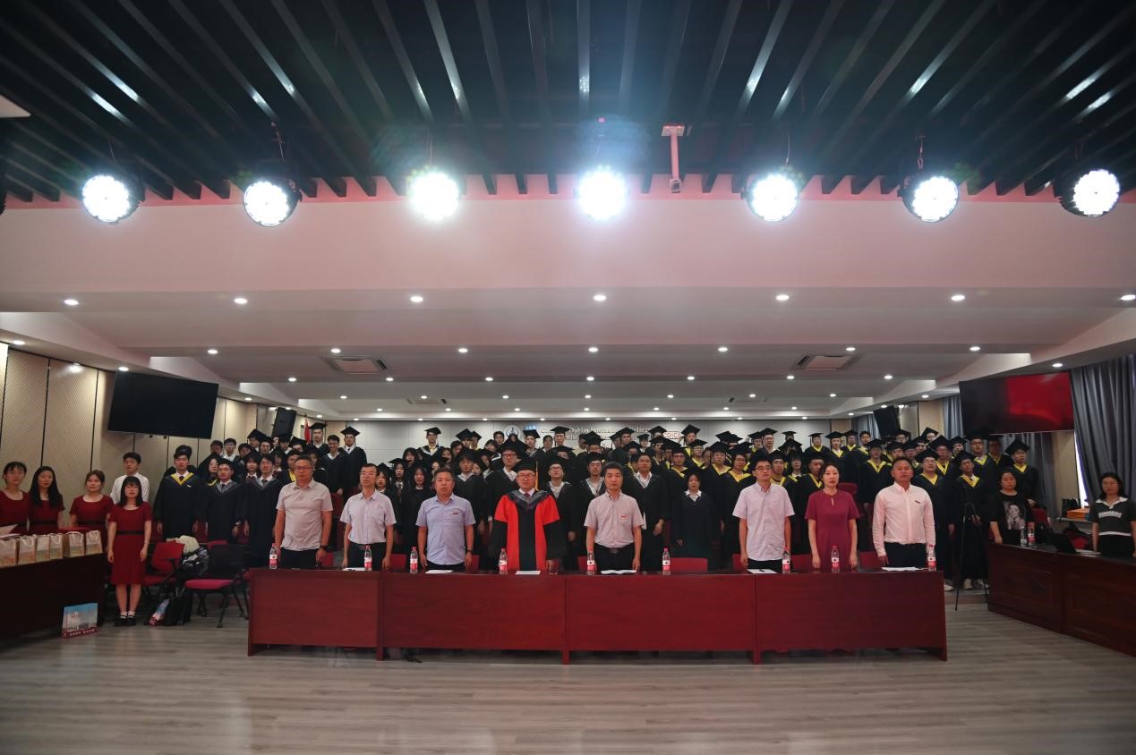 党委书记闫永刚宣读了关于授予2023届本科毕业生员工学位的决定,学院学位评定分委员会主席、经理宋学力为毕业生拨穗正冠、颁发学位证书。