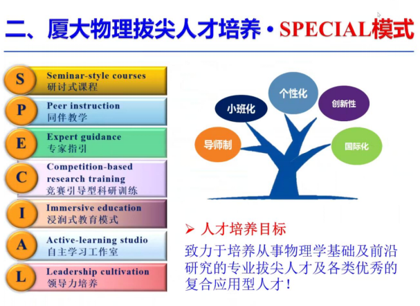 讲座中,陈理想教授从教育部拔尖计划2.0的时空背景、厦大物理拔尖人才培养的特色模式这两个宏观的维度,以及《量子力学》课程建设从课堂到实验室、再从前沿实验到思政教育这两个微观的维度,系统性地阐述如何实现拔尖人才培养与课程思政建设的融合融通、相辅相成。