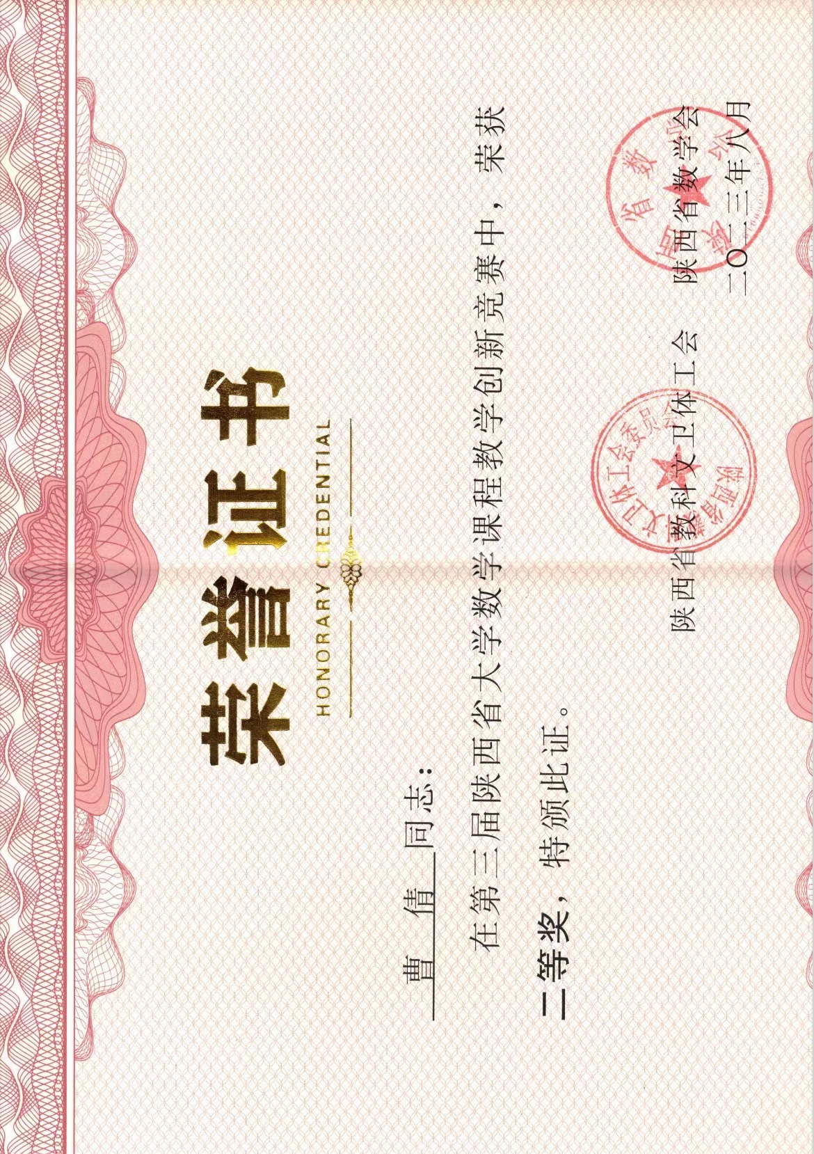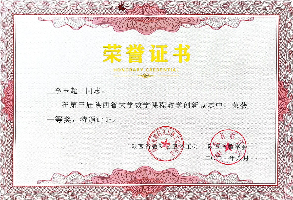 8月19日,第三届陕西省大学数学课程教学创新竞赛活动颁奖仪式暨第四届陕西高校大学数学课程建设与教学改革研讨会在榆林学院举行。竞赛分为材料评审和视频评审两个阶段,经过激烈的角逐,公司数学与统计教学发展中心选派的三位教师均获奖,其中李玉超老师获得一等奖,曹倩、刘佳两位老师分别获得二等奖。