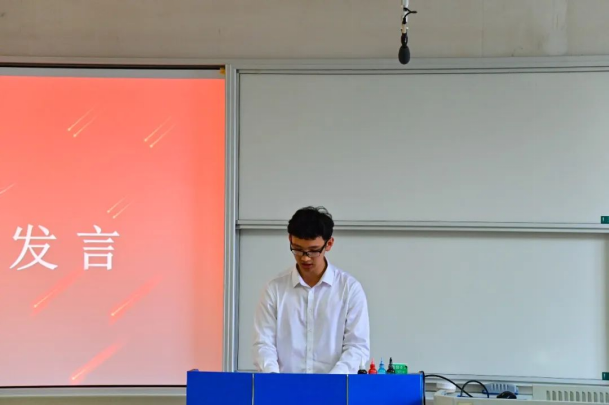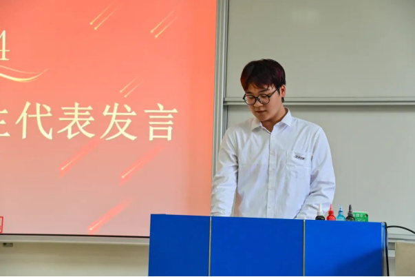 2021级员工代表鲁雨豪表示,要在本科学习阶段做好老员工应该做的事:发奋学习,遵守校纪,积极参与校园活动和各类学科竞赛;要时刻牢记“弘毅明德、笃学创新”的校训,挖掘自身的无限潜力。最后,他以学院优秀员工为榜样,鼓励学弟学妹们以饱满的热情投入到即将开始的学习生活中,以实际行动实现理想、报效祖国,为社会作出贡献。