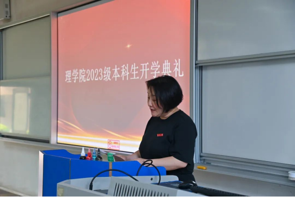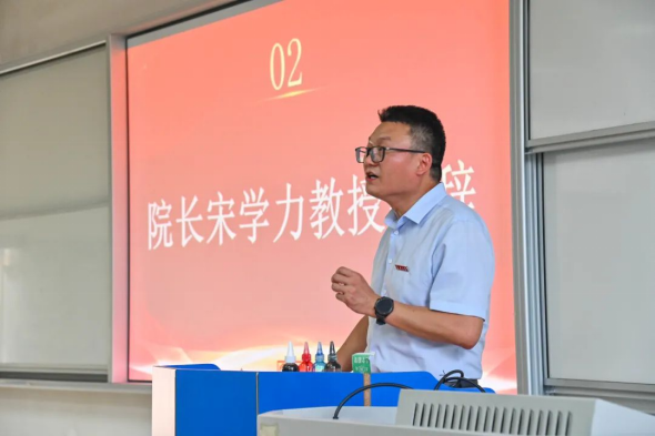 经理宋学力教授代表全院师生向138名本科新生表示诚挚的祝贺和热烈的欢迎。他立足学院专业地位,向各位新生介绍了学院今年的发展情况和专业的开设情况,阐述了基础学科在推动国家科学技术进步中的重要性和战略性意义,引导新生树立专业自信,在未来规划中将自身前途与祖国发展紧密联系在一起。他对同学们未来的学习生活提出了希望和要求,一是要有家国情怀,心有所系、情有所归,坚定理想信念;二是要做好学习规划,勤奋学习、刻苦钻研,明确学习目标;三是要转换学习方法、提升科研能力,塑造科学研究的敏感性和问题意识;四是要博览文化经典、提高综合素养,努力使自己成为党和国家的栋梁之才。他鼓励同学们大胆去探索、去尝试,做有理想、敢担当、能吃苦、肯奋斗的新时代好青年。最后,宋经理向各位老师致以教师节的问候和祝福,祝愿同学们都能够健康成长、学有所成。