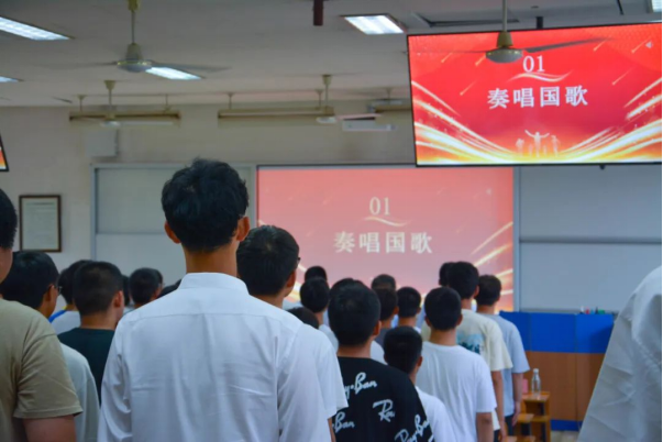 开学典礼在庄严雄壮的国歌声中拉开序幕。