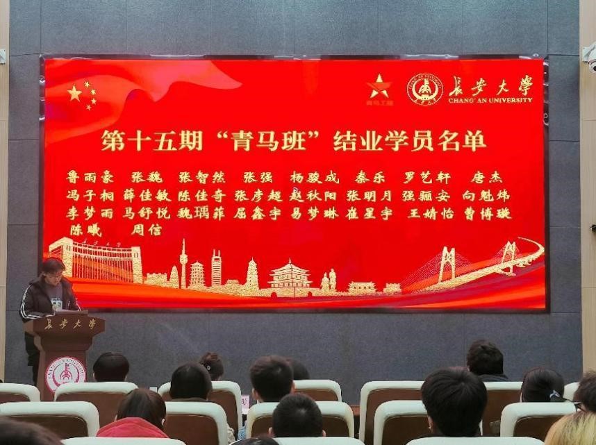 张智然、杨骏成从思想教育、理论学习和志愿服务等方面汇报了第十五期“青马班”总结情况,并宣布了第十五期“青马班”结业学员及优秀学员名单。