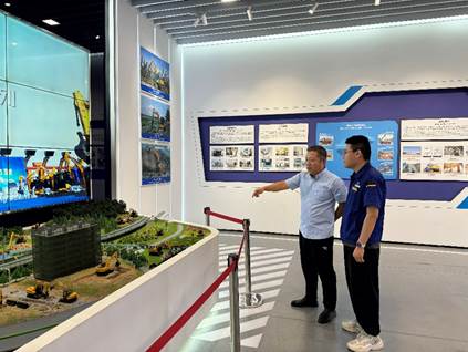 徐工集团挖掘机械事业部几位领导对徐春龙代表学院走访表示热烈欢迎,组织参观了集团文化展厅、挖掘机械事业部展厅以及挖掘机械智能化生产车间。