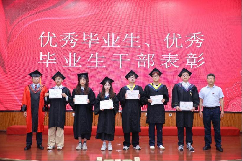 毕业生代表马苓涓同学代表学院全体毕业生,向老师们表示最衷心的感谢和最崇高的敬意。她表达了对学院的不舍和留恋,对未来的憧憬和期待。号召同学们铭记 “弘毅明德,笃学创新”的校训,保持对真理的敬畏、对创新的热忱,努力成为对社会有贡献的人。