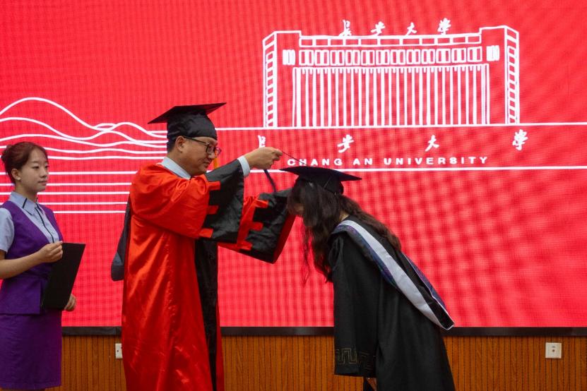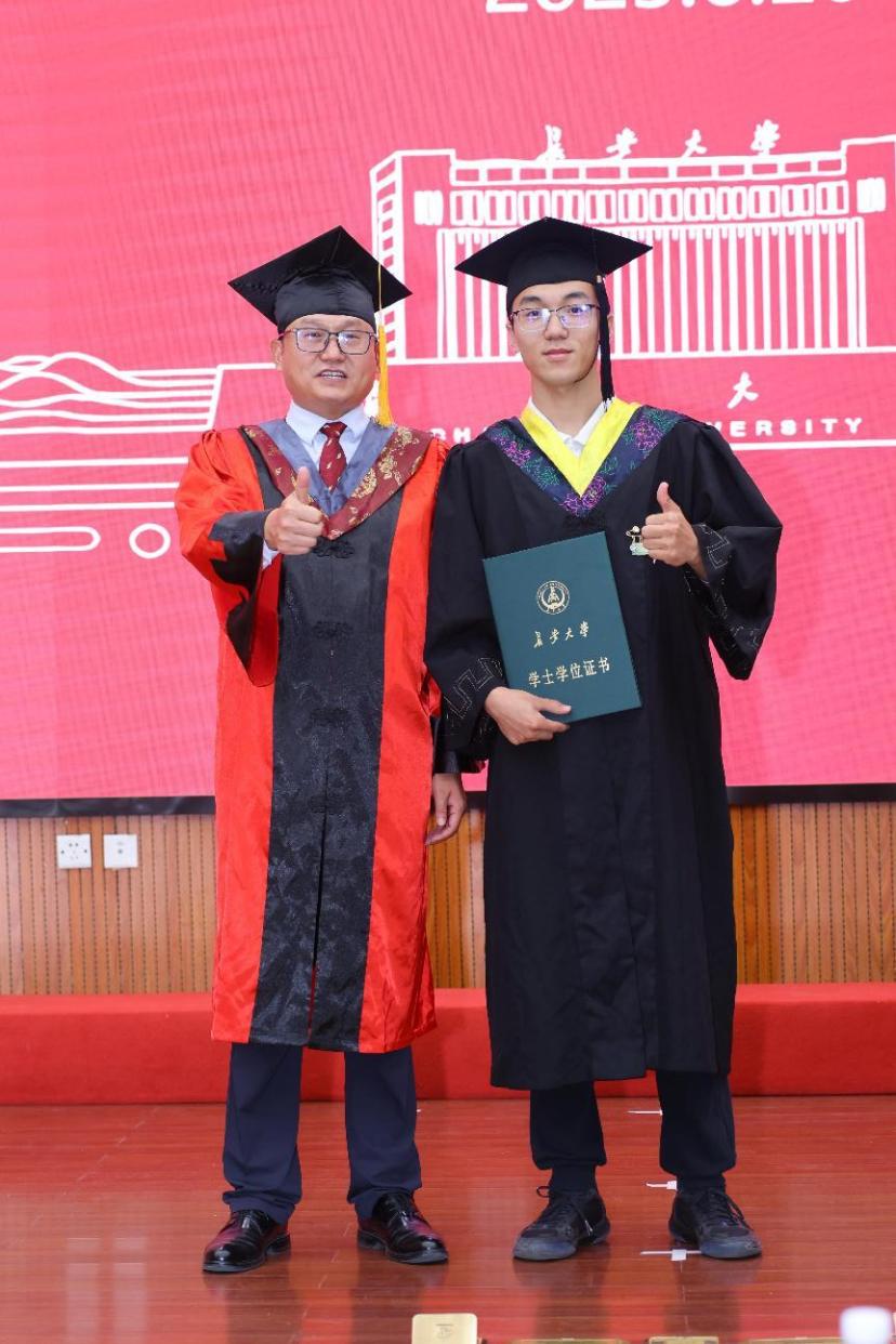 公司党委书记闫永刚宣读了2025届本科生、硕士研究生、博士研究生学位授予决定。学院学位评定分委员会主席、经理宋学力教授为毕业生正冠拨穗、颁发学位证书。
