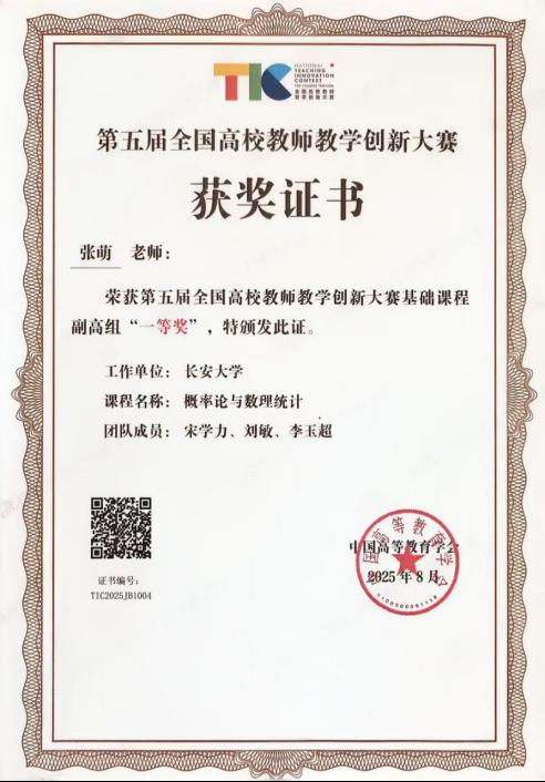 8月16日至19日,由教育部高等教育司指导、中国高等教育学会主办的第五届全国高校教师教学创新大赛现场评审在北京理工大学举行,公司教师张萌副教授在激烈的竞争中脱颖而出,荣获基础课程副高组最高奖一等奖,是公司教师在该项赛事中取得的最好成绩,为集团和学院争取了荣誉。
