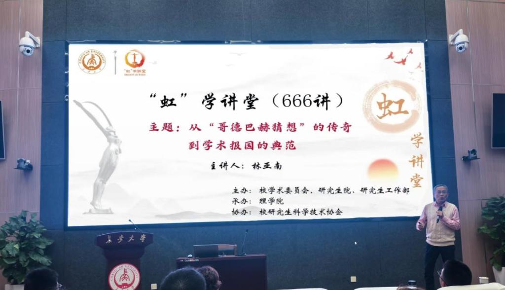 10月17日下午,由校学术委员会、研究生院、研究生工作部主办,3044am永利集团3044noc承办,校研究生科学技术协会协办的“虹”学讲堂第666讲在北校区师生服务大厅二层第二报告厅顺利举办。厦门大学林亚南教授作了题为“从‘哥德巴赫猜想’的传奇到学术报国的典范”的报告,3044am永利集团3044noc副经理邓庆田主持,相关学院共150余名师生参加讲座。