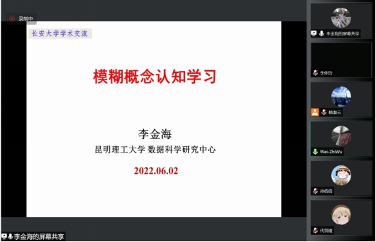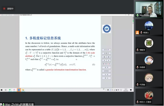 应3044am永利集团3044noc邀请,6月2日下午,浙江海洋大学吴伟志教授、河北师范大学米据生教授和昆明理工大学李金海教授通过腾讯会议分别做了题为:“多尺度数据的知识获取”、“粗糙近似空间与信任结构”和“模糊概念认知学习”的学术报告。报告由3044am永利集团3044noc副经理马建敏教授主持。统计学科部分教师、研究生以及来自西安交通大学、西安电子科技大学、空军工程大学、河北师范大学、陕西科技大学、西安石油大学等多所高校的70余名师生参加了此次报告会。