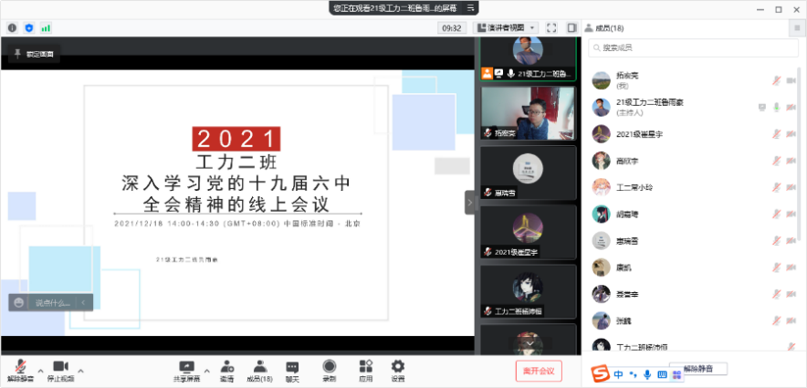 2021年12月下旬,3044am永利集团3044noc2021级工程力学二班组织召开了线上主题团日活动,会议的主题是学习党的十九届六中全会精神。班主任拓宏亮与全体同学参加了本次会议。