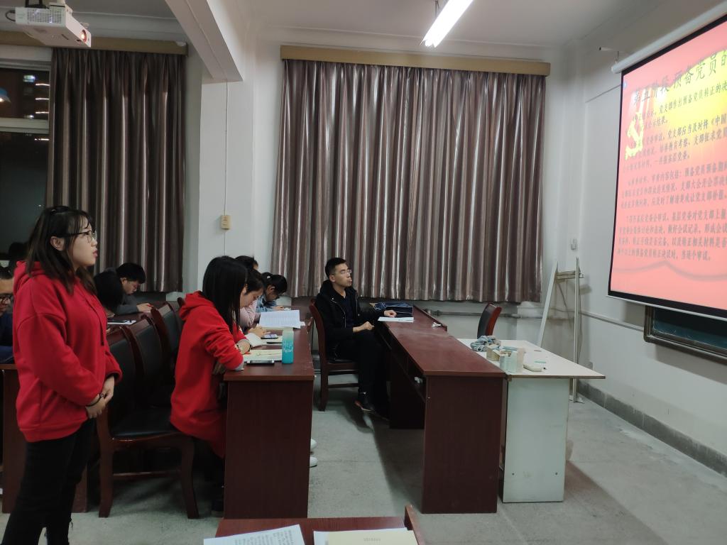 2019年10月29日晚,3044am永利集团3044noc研究生党支部全体党员及发展对象在基础楼317自习室集体学习《中共永利集团委员会发展党员工作规程》和“时代楷模——陈立群”的事迹,会议由李楚婷同志主持。