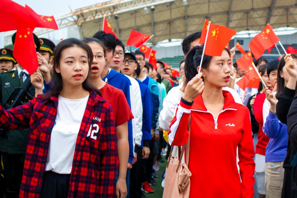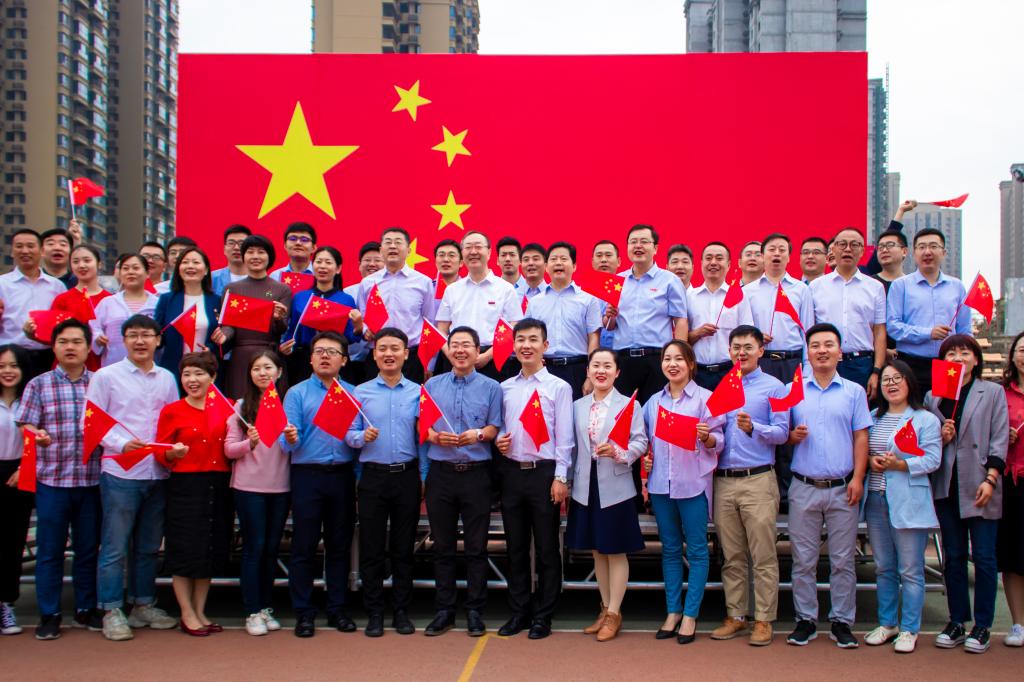 有一种感动叫“中国红”,有一种骄傲叫“五星红旗”,有一种表白叫“我爱你中国”。升国旗仪式总能燃起人们的爱国热情,伴着分列式进行曲,身着礼服、步伐矫健的国旗护卫队队员护送着鲜艳的五星红旗走向升旗台。雄壮的国歌声响起,国旗冉冉升起,全体师生注视国旗,目光坚定,并以饱满的精神状态高唱国歌,表达队祖国无限的热爱和崇高的敬意。活动期间,全体师生手持鲜艳的五星红旗,现场气氛热烈。