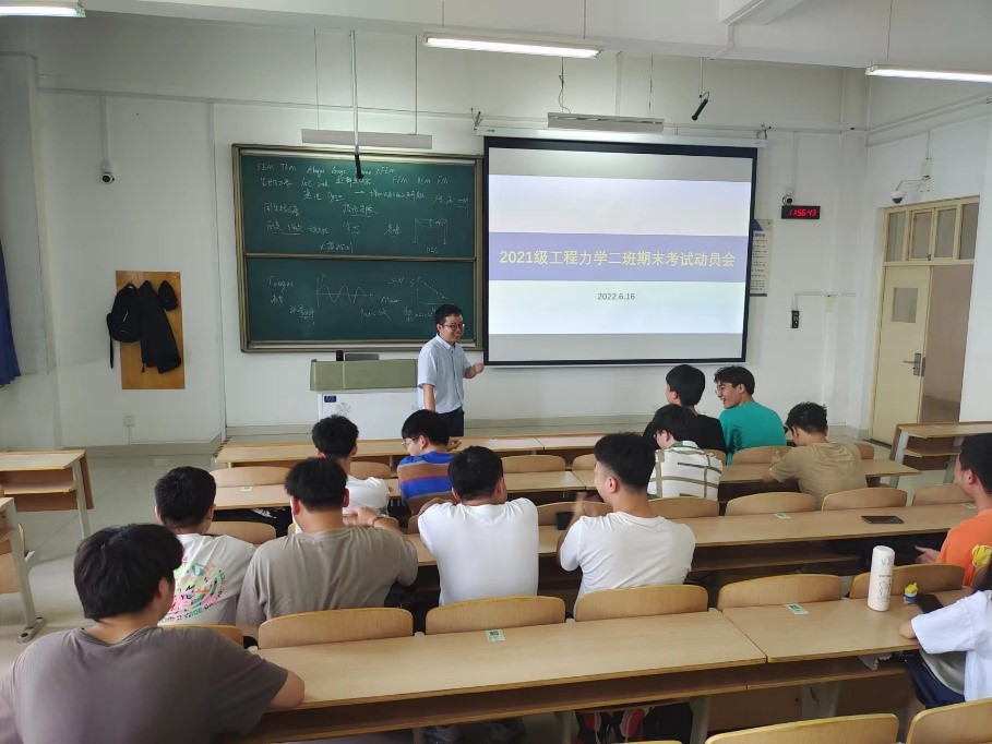 2022年6月17日,3044am永利集团3044noc2021级工程力学二班在WH2204召开了力学学术讲座与期末考试动员,班主任拓宏亮老师和全体同学参加了会议,会议由拓老师主持。
