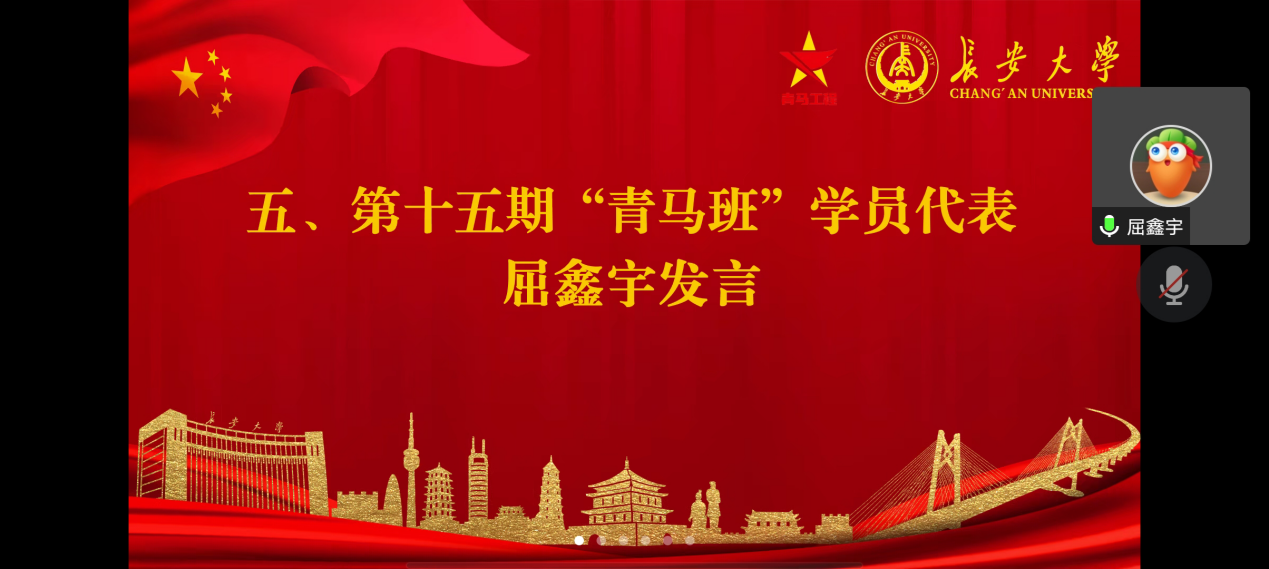 第十五期“青马班”学员代表屈鑫宇向学院提供宝贵学习机会表达了感谢,表示将潜心学习马克思主义理论,努力学好专业技能,积极投身志愿服务,努力成为一名优秀的青年马克思主义者。