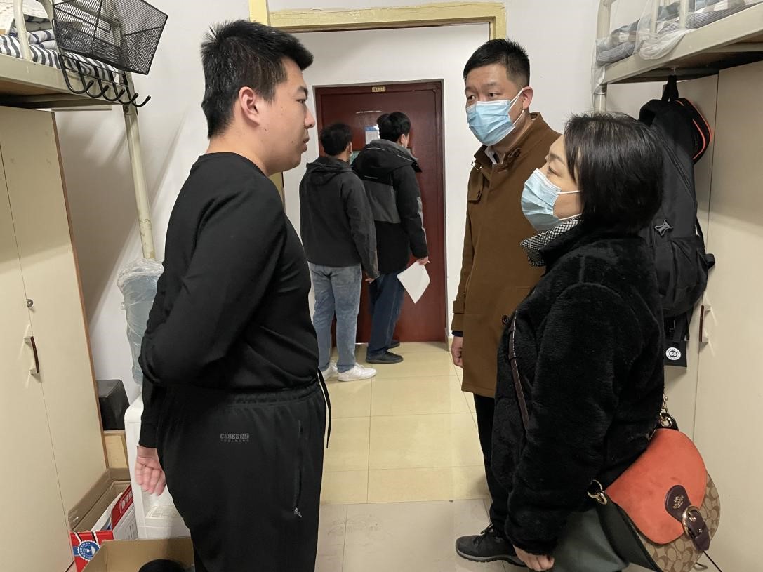 为及时了解新学期返校后员工的思想动态和学习生活状态,进一步夯实三全育人合力。2月21日上午,公司党委副书记屈颖,思政班主任梁振涛、王成,本科生辅导员刘延海、杨雪菲在渭水校区联合走访了本科生宿舍。
