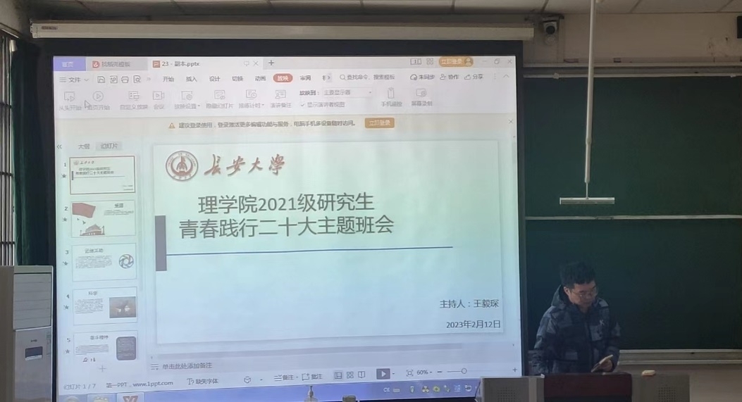 此次班会围绕“爱国、团结、奋斗、科学、互助”五个关键词,分享践行党的二十大精神、立志成长为新时代好青年的思考和实践。王毅琛就上述主题作了发言报告并且结合自身经历为大家讲述了谨防电信诈骗的重要性和必要性。最后,周小娟再次强调了防范诈骗的重要性,同时叮嘱同学们在新的学期要更加珍惜时间,合理安排科研任务,同时也要注意排解压力,张弛有度,不负韶华。