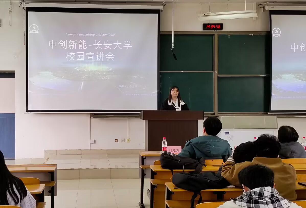 李玉娇代表西安中创新能网络科技有限责任公司做了招聘宣讲。她从公司简介、发展历程、岗位需求和福利待遇等方面详细介绍了公司的发展现状和广阔前景,鼓励感兴趣的同学们加入公司团队,共同努力奋斗。在互动交流环节中,同学们就专业技能与职业需求等话题与企业负责人进行了交流。