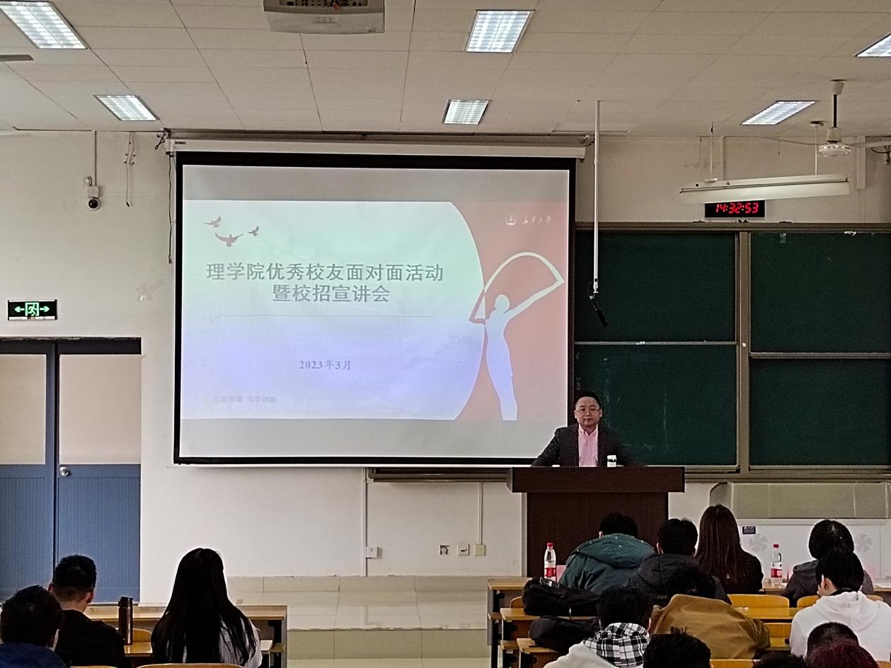 吴林河感谢母校的邀请,感谢学院老师的培养,向同学们分享了自己的学习、工作和创业经历。他勉励同学们在校期间认真学习专业知识,积极参与社会实践,始终保持身心健康,努力提升综合能力,科学分析就业环境,最终成就精彩人生。
