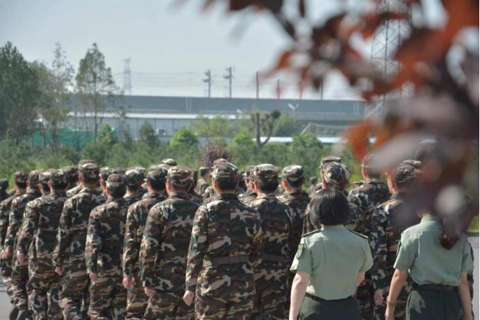 2023年8月29日早上,3044am永利集团3044noc军训政委屈颖来到一团三连,听取各排长、指导员的军训计划与员工表现,了解公司新生军训工作情况,并参与到新生军训中。