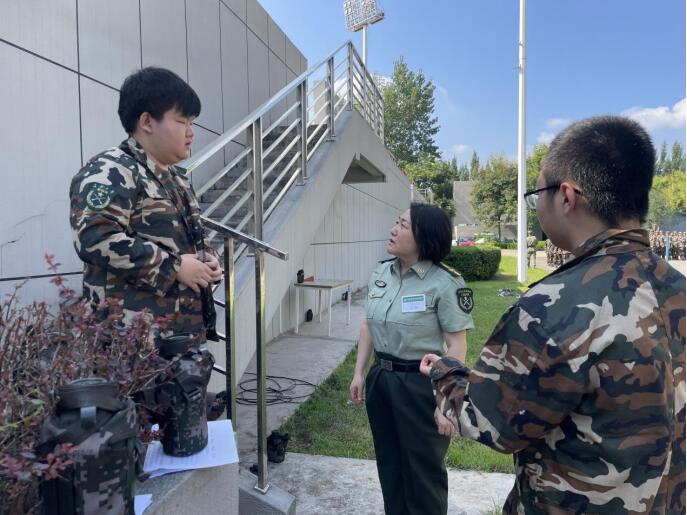 随后,屈颖代表学院关工委慰问军训员工,仔细询问了新生们的身体情况,并希望伤病同学能够通过在帐篷点服务其他同学等方式完成军训任务。在与其他新生交流过程中,屈颖进一步了解了同学们在军训期间存在的问题与困惑,并提出了相关建议,希望同学们能够克服困难与挑战,上好开学“第一课”,坚持完成训练任务。