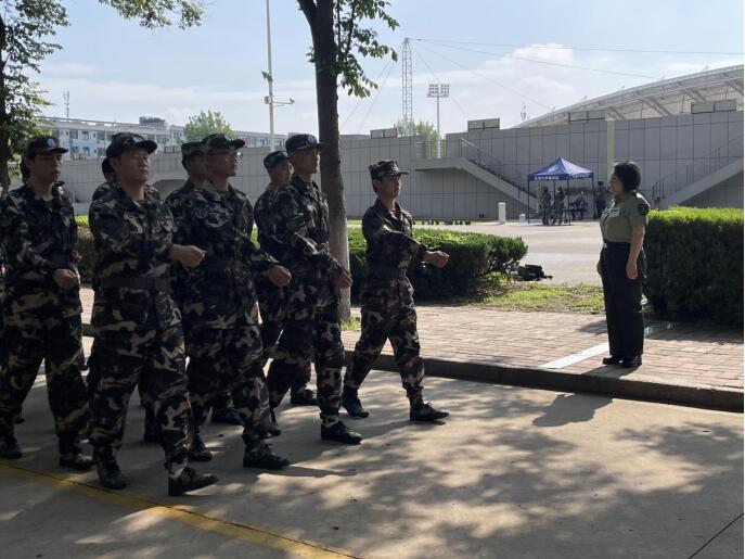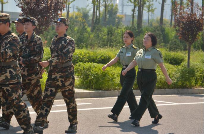 政委屈颖、指导员姜雨彤与员工们共同训练