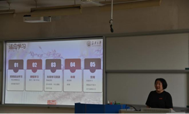 首先,屈颖副书记以“了解”作为关键词,向同学们讲述了学校的悠久历史,将学校优质的教育资源、丰富的校园活动作以介绍,希望同学们可以主动去了解自己生活的城市、校园以及身边的老师和朋友,为适尽快适应和融入老员工活打下良好的基础。