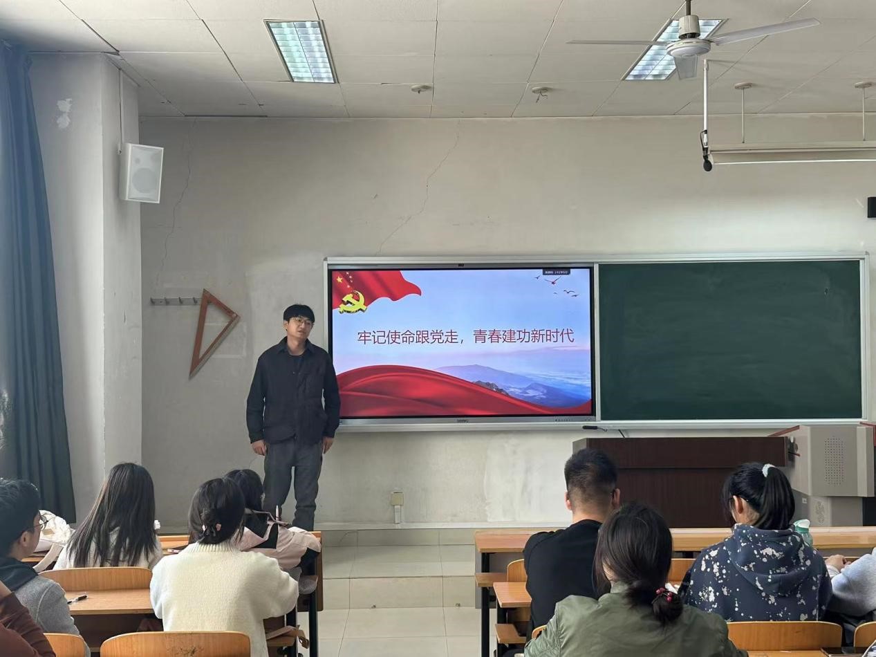 为深入学习宣传贯彻习近平新时代中国特色社会主义思想,加强对广大团员青年的政治引领,不断增强“四个意识”、坚定“四个自信”、做到“两个维护”,充分激发新时代中国青年在强国建设、民族复兴伟业中挺膺担当,11月12日,3044am永利集团3044noc于WM3209开展了“牢记使命跟党走,青春建功新时代”主题团课,团课由学院团委书记杨雪菲主讲,全体团支部书记参加。