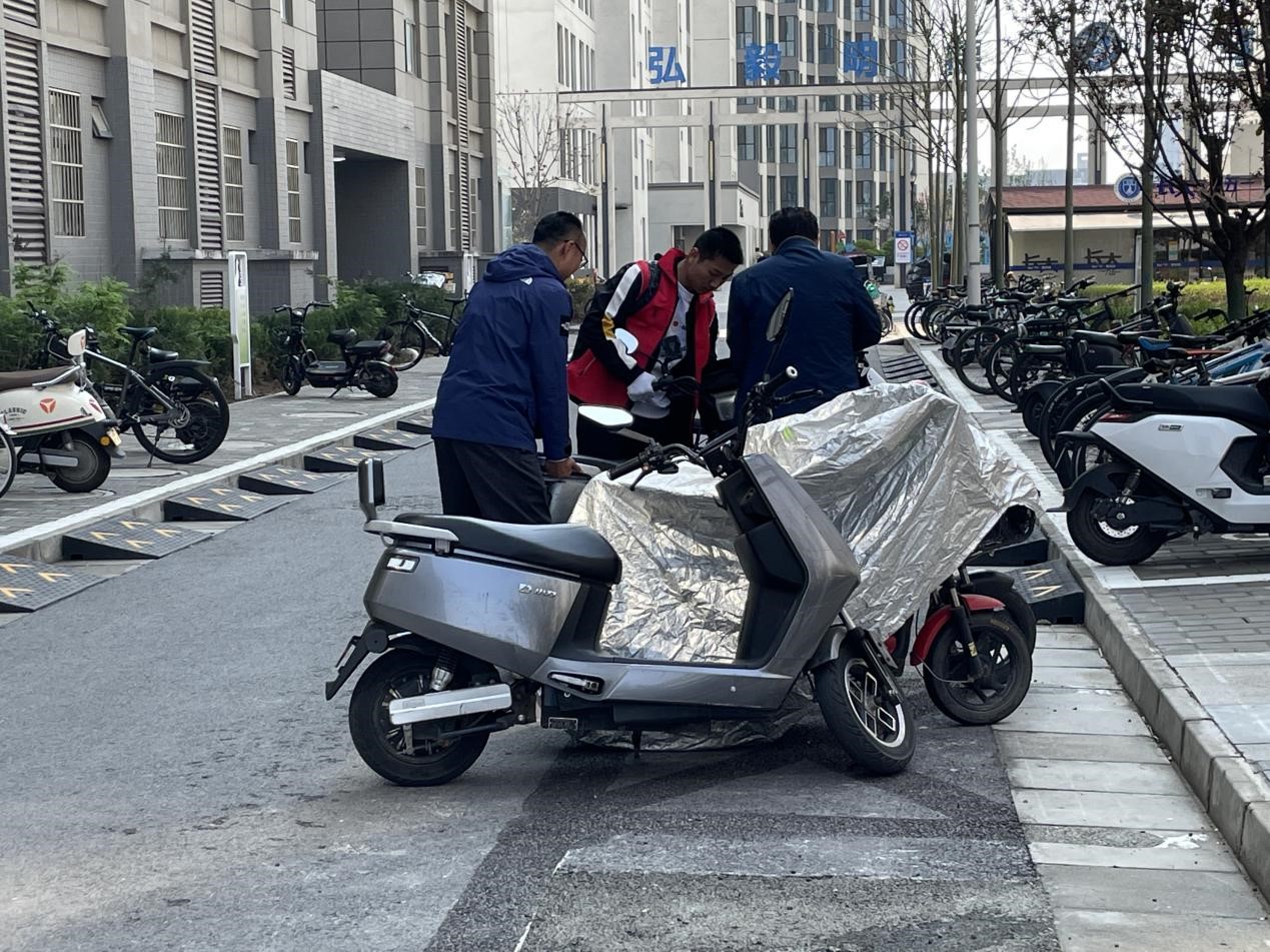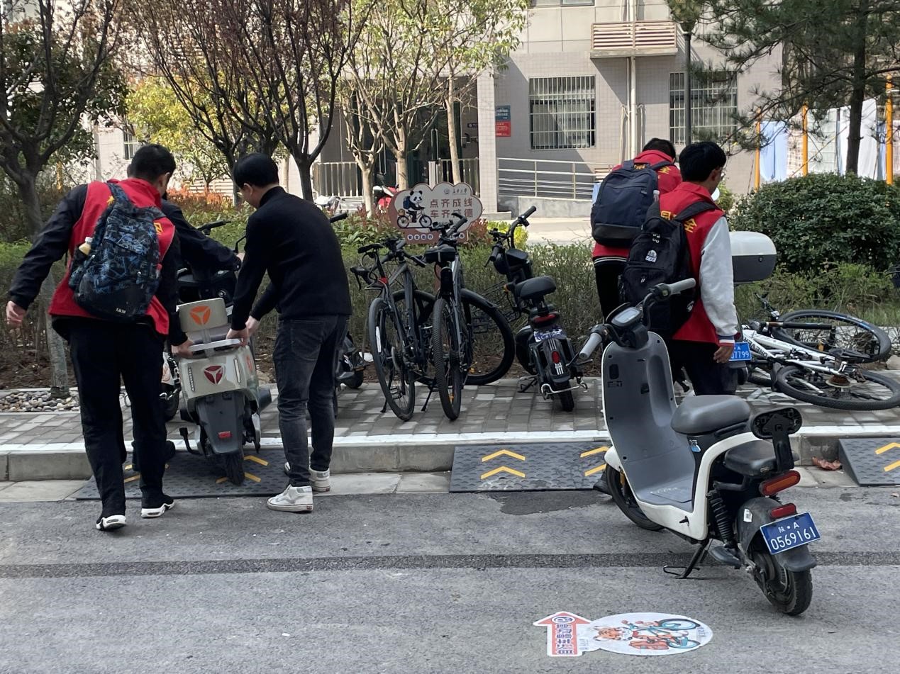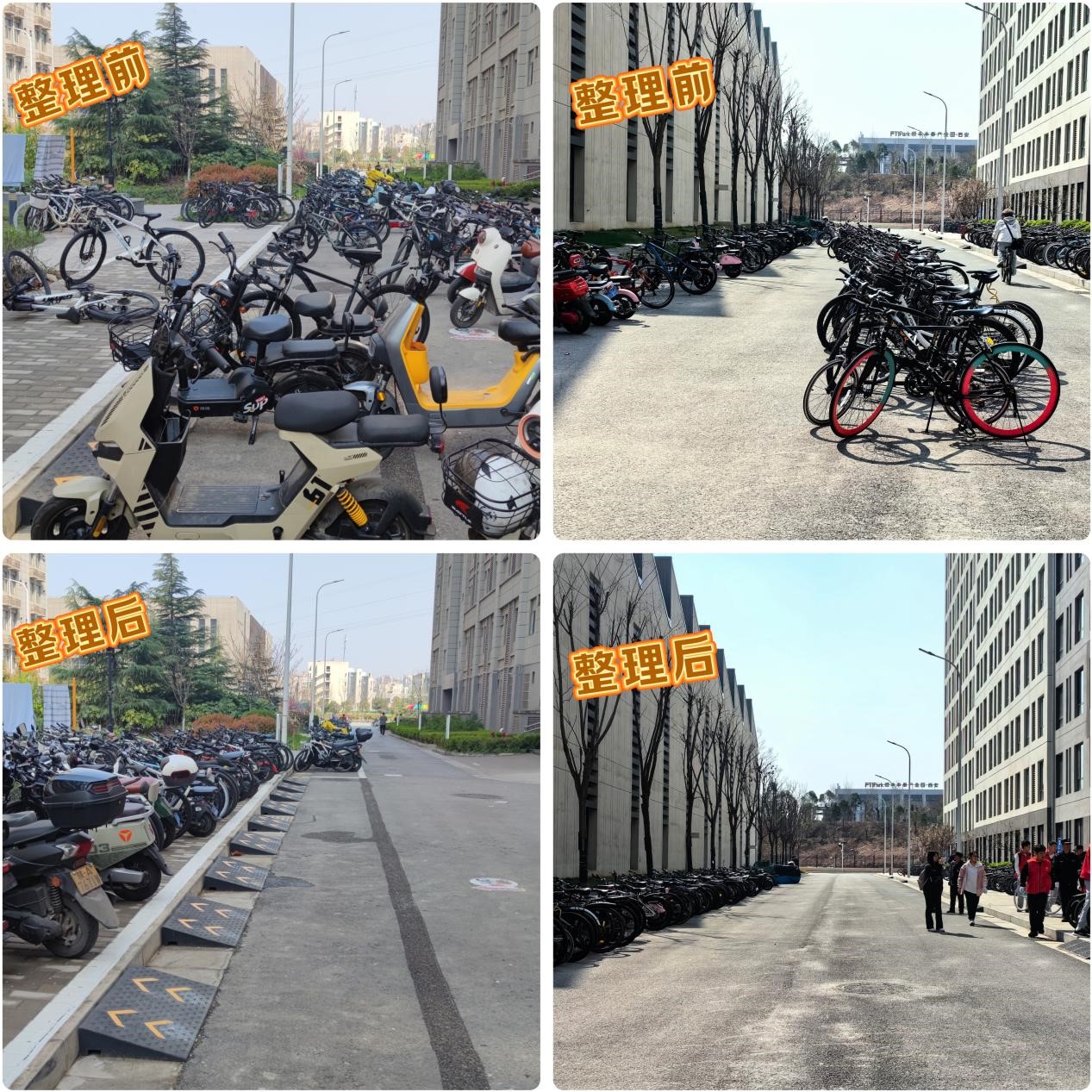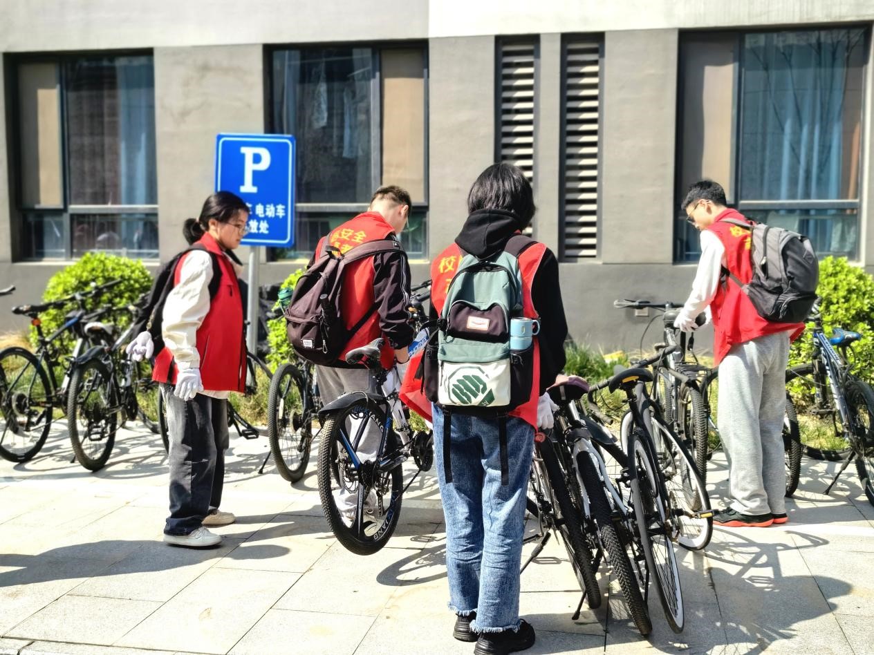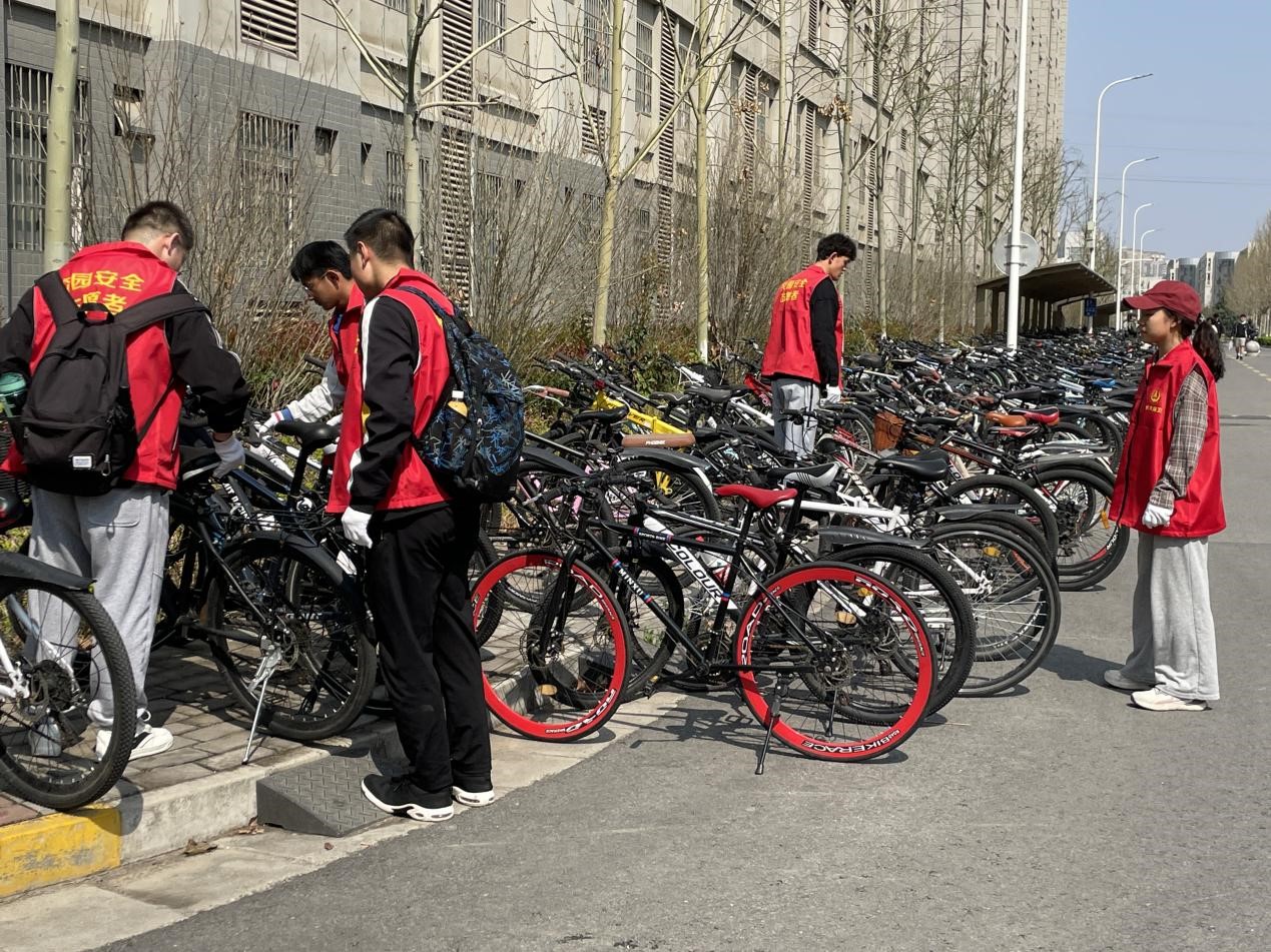 志愿者们参与活动积极投入、认真负责,在19号宿舍楼下集合、分组、分工,对停车未入位、占用机动车道及乱停乱放的车辆进行逐一规范整理,用实际行动帮单车“归位”。同时向员工宣传规范的单车停放方式和校园交通规定,号召全体师生共同维护有序、整洁的校园环境。