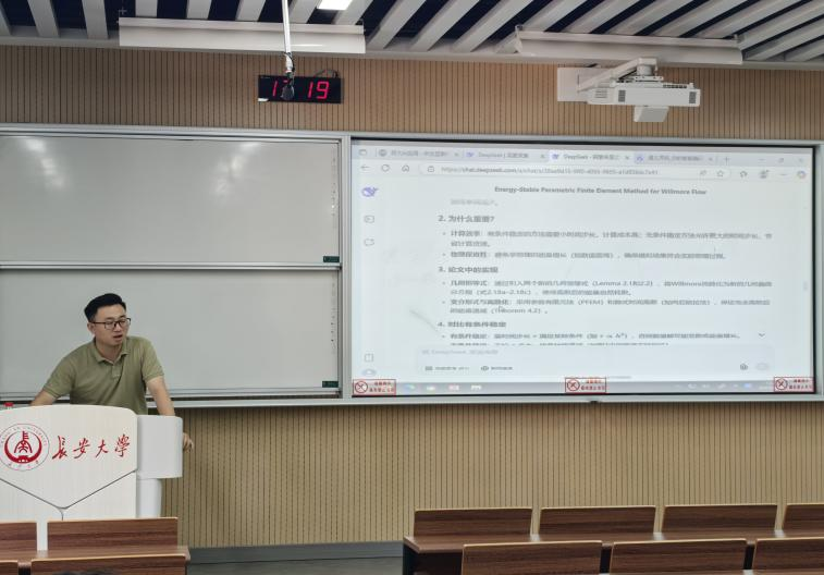 最后,高普阳对同学们的分享进行了总结,并现场通过DeepSeek对AI辅助学习和阅读文献进行演示。他强调,AI工具是学习的有力助手,但同学们在使用过程中要注意使用规范与伦理边界。