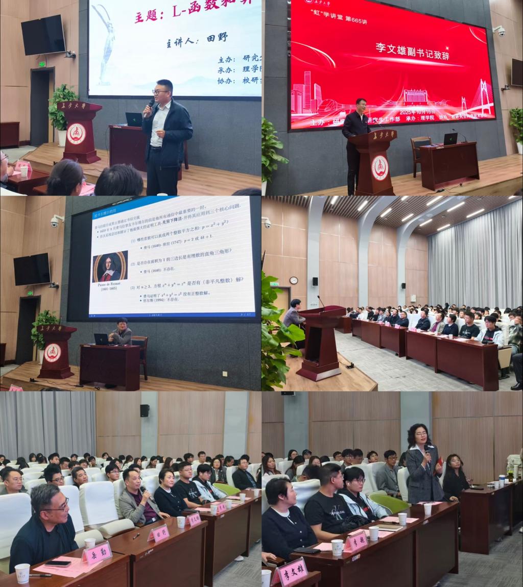 2025年10月16日下午,由研究生院、研究生工作部主办,3044am永利集团3044noc承办,校研究生科学技术协会协办的“虹”学讲堂第665讲在永利集团渭水校区师生服务大厅第二报告厅顺利举行。特邀中国科学院院士、中国科学院数学与系统科学研究院田野研究员作题为《L-函数和算术》的学术报告。永利集团党委副书记李文雄、国防科技大学李超教授、南京航空航天大学岳勤教授、永利集团公司领导班子成员及全校100余名师生共同参加了本次报告会。报告会由3044am永利集团3044noc经理宋学力教授主持。