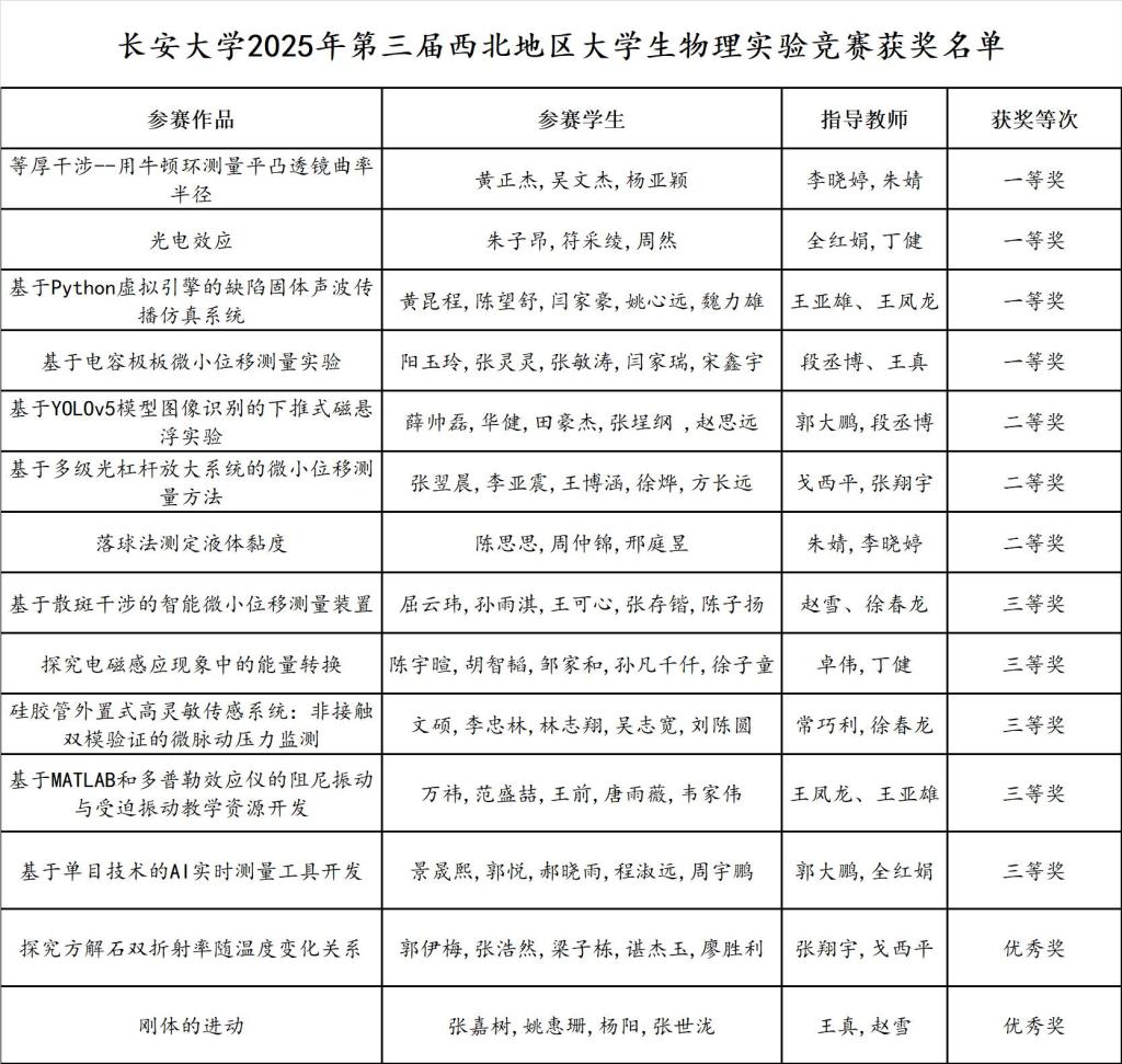 8月25日,2025年全国老员工物理实验竞赛(创新)西北地区赛在西安落下帷幕。公司选派14支代表队参赛,获得一等奖4项、二等奖3项、三等奖4项、优秀奖2项。获奖等次与数量均位列参赛高校前列。本次竞赛由全国老员工物理实验竞赛组委会西北地区分委员会主办,陕西师范大学与西安交通大学联合承办,吸引了来自西北地区59所高校的536支队伍参加竞赛。